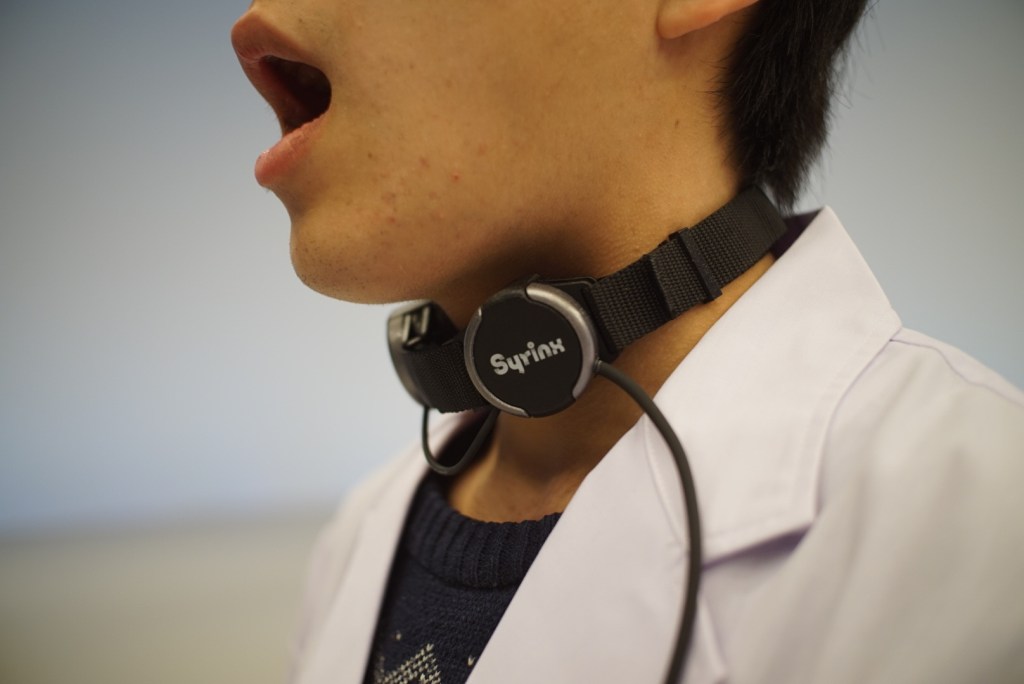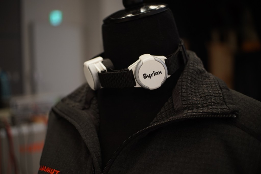 喉頭がん等で声帯を失った人の声を取り戻す福祉デバイス。デバイス内部のスピーカーから喉に振動を与えることで、ユーザーは口パクでの発声が可能となる。こういった原理の発声装置は過去20年デザインが変わっておらず、片手で喉に押し当てながら使わざるを得ない構造で、それにより生成される声もいかにも合成音声のような声であった。そこでSyrinxはデバイスを首に巻くデザインにしてハンズフリーに。また喉に与える振動に特殊な処理を加えることでより人間らしい声に近づけた。